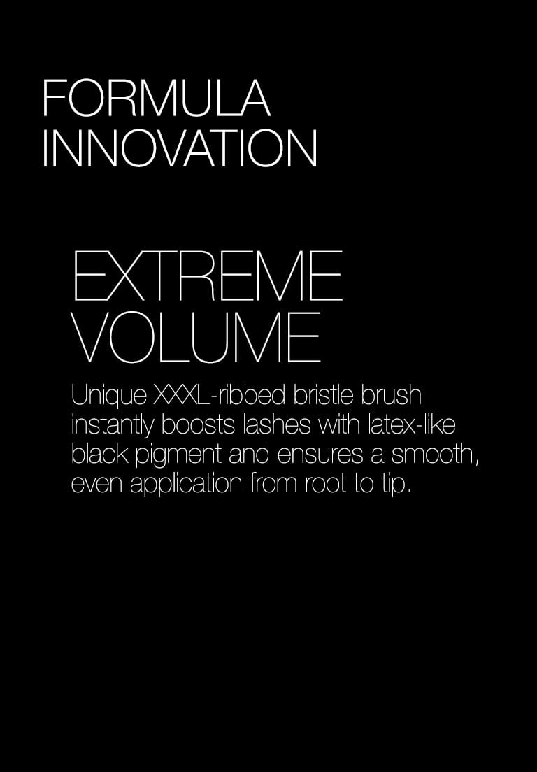 An innovative mascara that delivers extreme volume, extreme black pigment, and extreme performance in one coat.